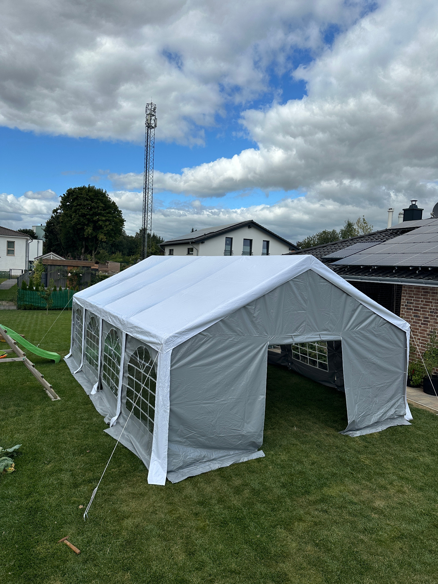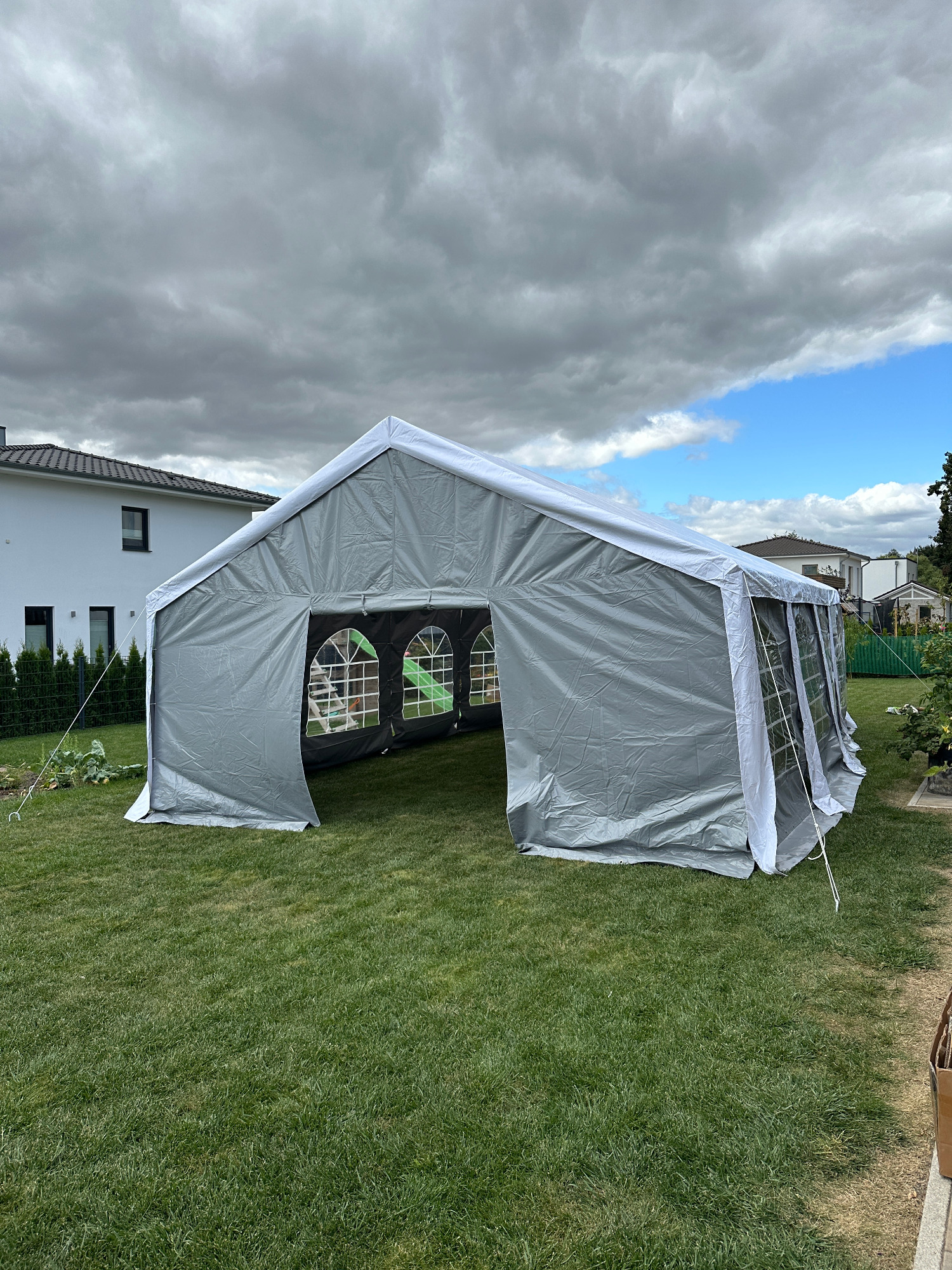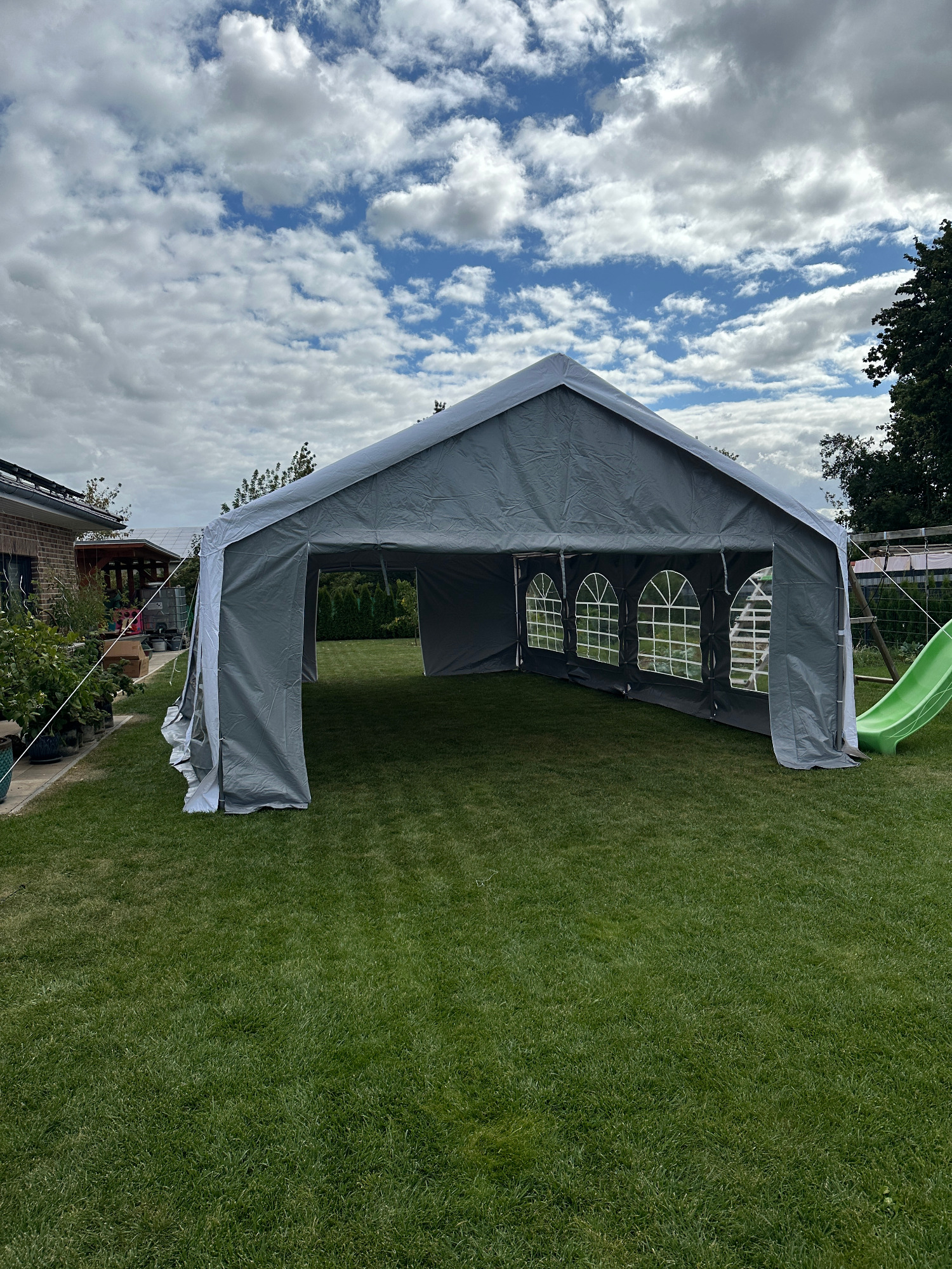 Perfekt für die nächste Gartenparty - Ideal für Hochzeiten, Geburtstage oder Vereine, Klubs und vieles mehr. Das Zelt ist robust und stabil gebaut. Des Weiteren ist es Wasserdicht und UV - Beständig(80+). Dank der verschließbaren Seitenwände und Stirnseiten bietet es einen guten Wind/Wetterschutz. Spendet Schatten an heißen Tagen und sorgt für eine wohlige Atmosphäre in den Abendstunden - durch abnehmbare Seitenwände/Stirnwände auch als Pavillon verwendbar.
